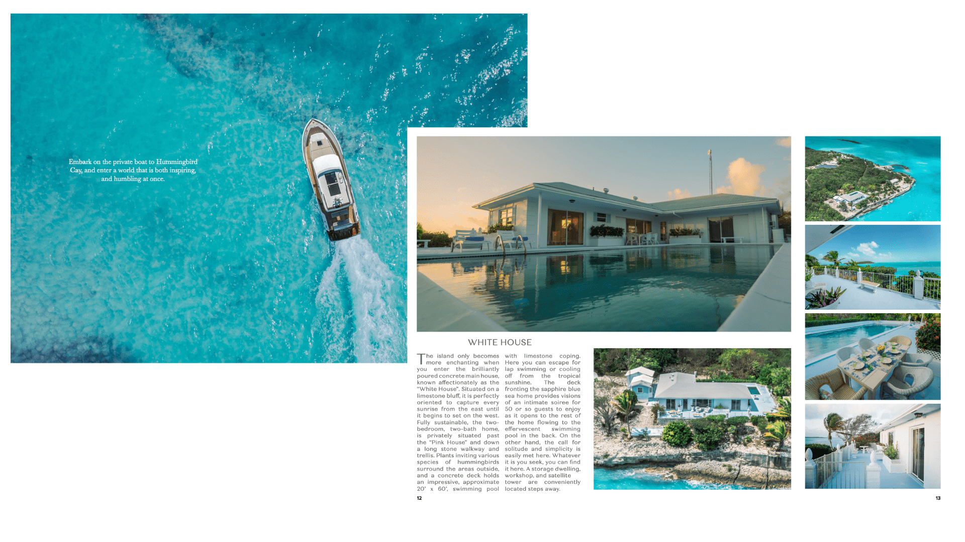 An entire Island and beachfront property for sale that needed a refreshened branding package including photography, graphic design, publication, video material of both on-site housing as well the remaining island